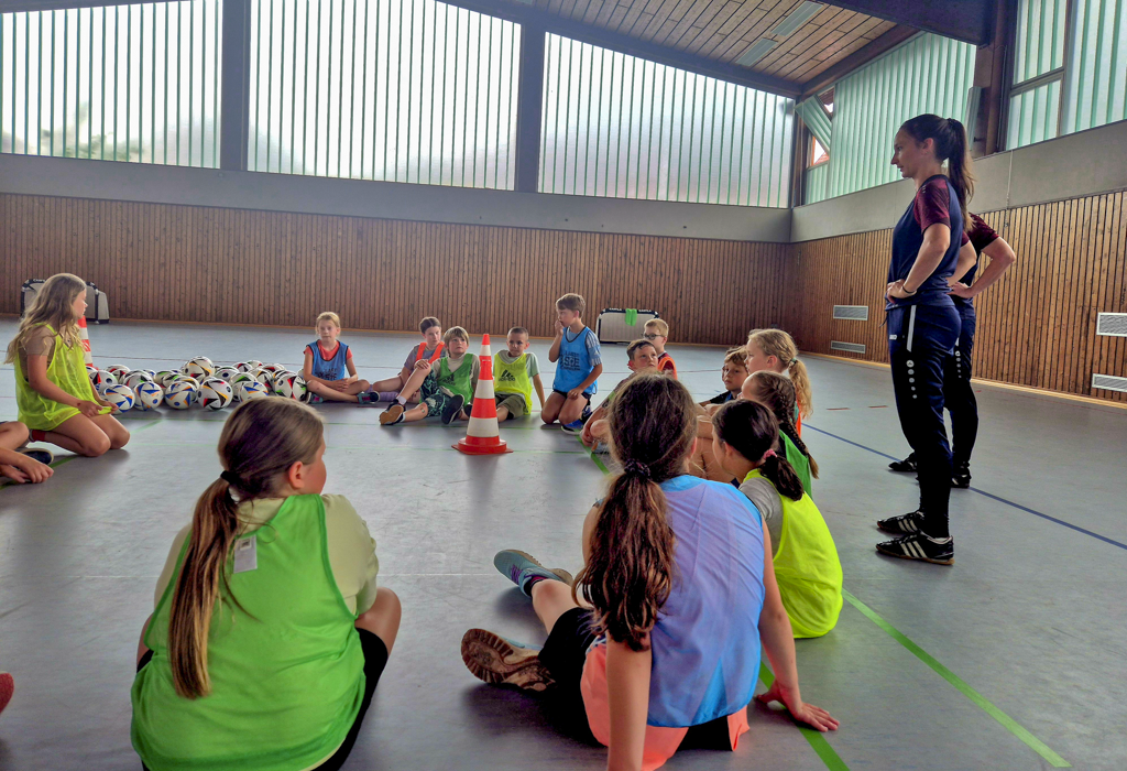 Die Schülerinnen und Schüler der dritten und vierten Klassen wurden in einer abwechslungsreichen Trainingseinheit betreut. Mit viel Engagement führten die beiden qualifizierten Trainerinnen Christine Ebert und Alina Hemmerich vom BFV/DFB durch das Programm – mit einem klaren Ziel: Mädchen für den Fußball zu begeistern.